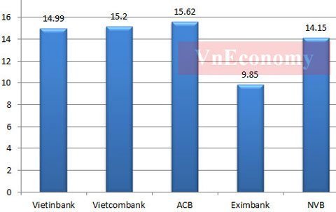 Xét góc độ tổng số tiền các ngân hàng chi cho nhân viên, trung bình mỗi tháng Vietcombank chi 17,66 triệu đồng cho mỗi nhân viên, kế đến là ACB (17,43 triệu đồng), VietinBank (trên 16,5 triệu đồng), Navibank (15,33 triệu đồng) và Eximbank (12,33 triệu đồng).