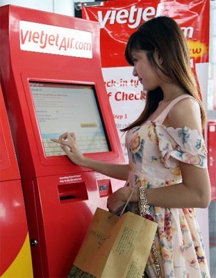 VietJetAir là hãng hàng không đầu tiên tại Việt Nam đưa vào sử dụng máy làm thủ tục tự động (kiosk check-in) tại các sân bay - điểm đến của hãng. Đây là công nghệ hiện đại được sử dụng để tăng tính chủ động và tiết kiệm thời gian, hành khách chỉ mất khoảng 1 phút để hoàn thành thủ tục lên máy bay. Bạn cũng có thể làm thủ tục qua mạng internet trên website của hãng.