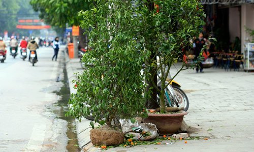 sau khi bị vặt trụi quả bỏ lại trên vỉa hè phố Bà Triệu