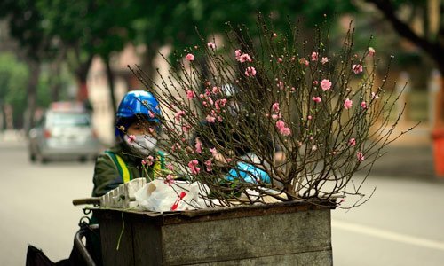 Chỉ cần một cành đào nhỏ là đã chiếm hết diện tích