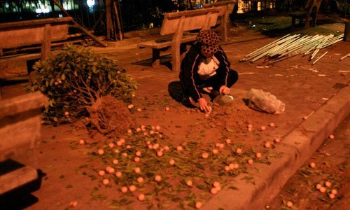 quất đi thu gom quất vứt lại vỉa hè về vườn trồng, để lại đất rơi lả