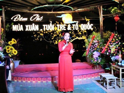 Bên bờ sông hương hiền hoà, dưới tiết trời mưa phùn, Đêm thơ nguyên tiêu tại Huế với chủ đề “Mùa Xuân, Tuổi Trẻ và Tổ Quốc” vừa diễn ra tối 23/02/2013 tại Trung tâm du lịch trải nghiệm Huế xưa và Huế nay.