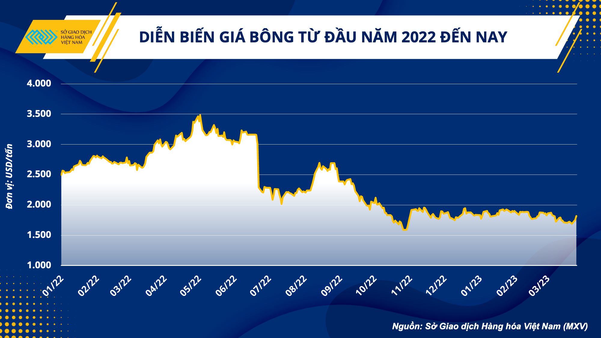 Giá bông được giao dịch trên Sở ICE đã trải qua năm 2022 với những rung lắc mạnh mẽ. Có thời điểm, giá bật tăng lên mức cao kỷ lục với 157,00 cents/pound, cao nhất kể từ mức đỉnh lịch sử vào năm 2011, rồi ngay sau đó lại tụt xuống mốc 70,00 cents/pound, thấp nhất kể từ tháng 11/2020 khi giá đồng USD ở mức cao nhất trong 20 năm sau khi Cục Dự trữ Liên bang Mỹ (Fed) tăng lãi suất liên tục. Cũng trong thời gian này, Trung Quốc, quốc gia nhập khẩu bông hàng đầu thế giới đang nghiêm ngặt trong việc thực hiện chính sách Zero Covid, khiến nhu cầu về bông trên toàn cầu rơi vào tình trạng thâm hụt nghiêm trọng, đã kéo giá bông lao dốc thảm hại.