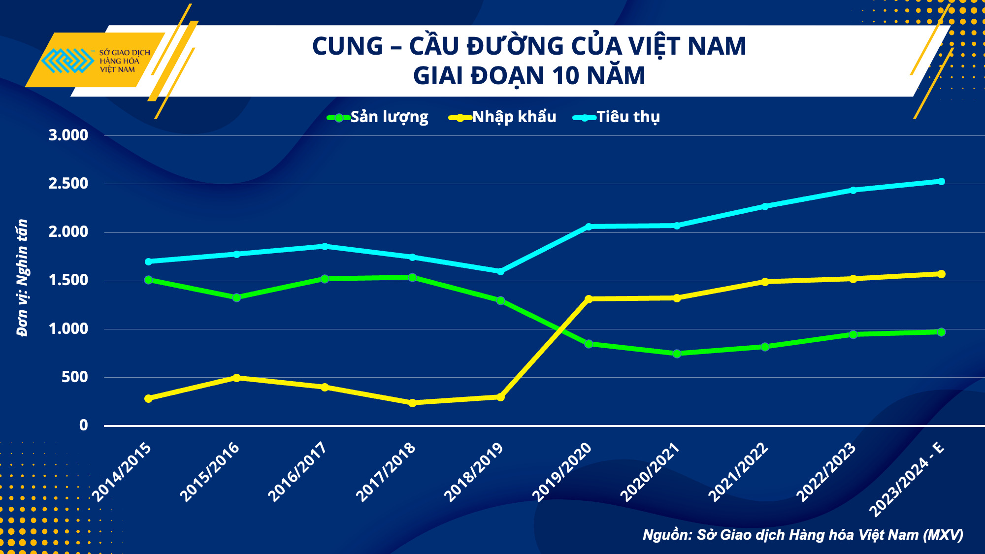Dù không phải quốc gia nhập khẩu đường thuộc top đầu thế giới nhưng nhu cầu tiêu thụ đường của Việt Nam đang tăng dần trong những năm gần đây, theo đà của quy mô dân số.