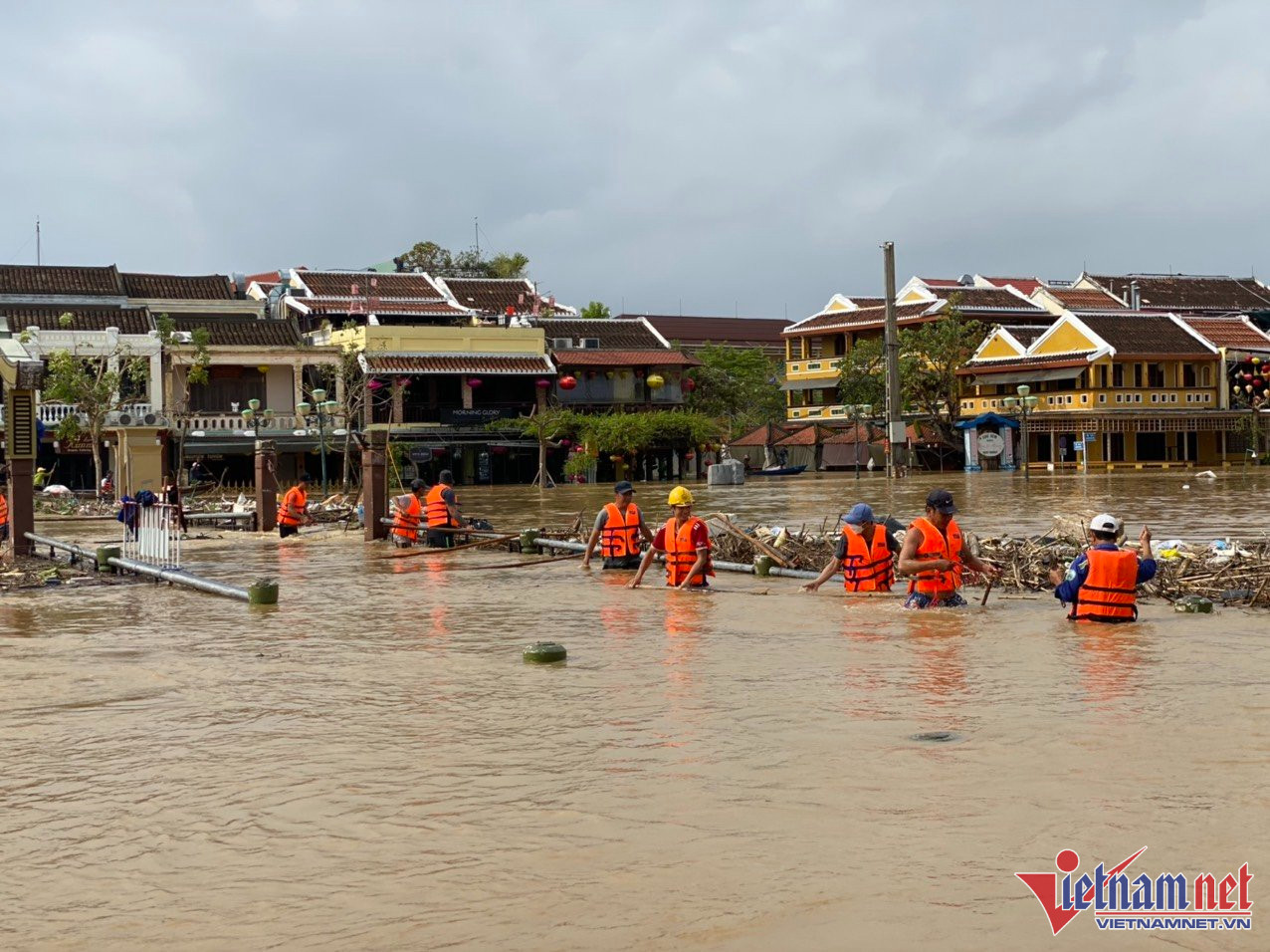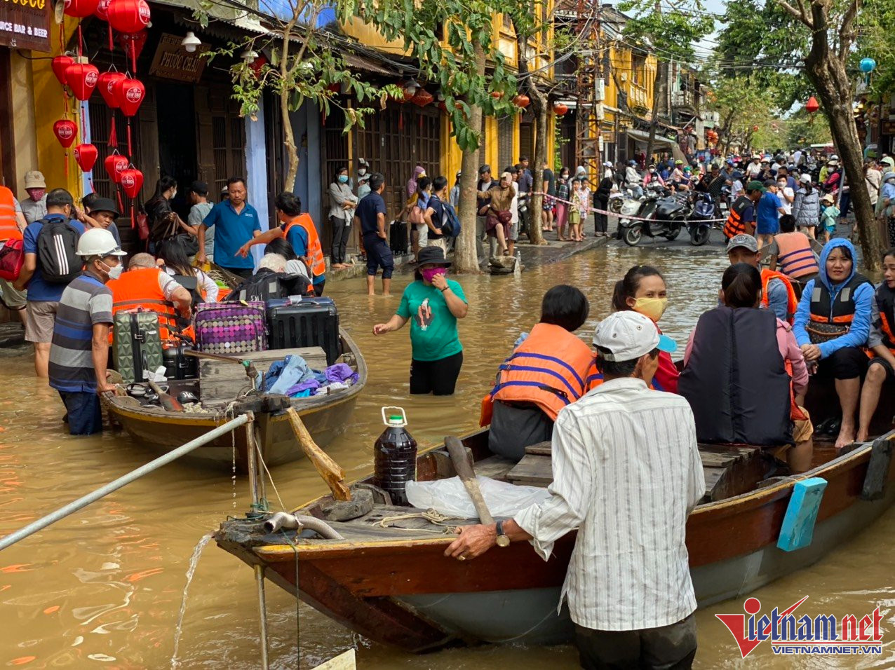 Ngày 11/10, Phó Chủ tịch UBND TP Hội An (tỉnh Quảng Nam) cho hay, thời điểm 10h cùng ngày, nước lũ tại phố cổ là 2,21m (trên BĐ3 0,11m), hiện vẫn đang có dấu hiệu đứng.Ghi nhận của PV VietNamNet, các tuyến đường ở trung tâm TP như Nguyễn Thái Học, Bạch Đằng, Nguyễn Phúc Chu, Lê Lợi… ngập sâu hơn 2m. Tại điểm nối phường Thanh Hà, nước ngập lên mặt đường hơn 1m.Điểm giao giữa đường Lê Lợi và Trần Phú nhiều du khách thuê ghe để vận chuyển hành lý chạy lũ.Nhóm du khách đến từ Hàn Quốc và Anh đi du lịch, thuê homestay trên đường Nguyễn Hoàng, do nước lên cao nên quyết định trả phòng, thuê ghe mang theo hành lý để ra vềLực lượng chức năng dọn dẹp tại cầu An Hội khi nước lũ dồn về, mang theo nhiều cây cối, rác từ thượng nguồn đổ dồn xuống.Nhiều du khách tại phố cổ “rút lui” bằng thuyền khi nước ngập cao, không di chuyển được.Được biết, tại phố cổ nước bắt đầu lên từ 20h ngày 10/10. Nước lũ lên nhanh khiến các hộ gia đình ven sông ảnh hưởng, nhiều nhà ngập vào đến nửa cánh cửa chính.