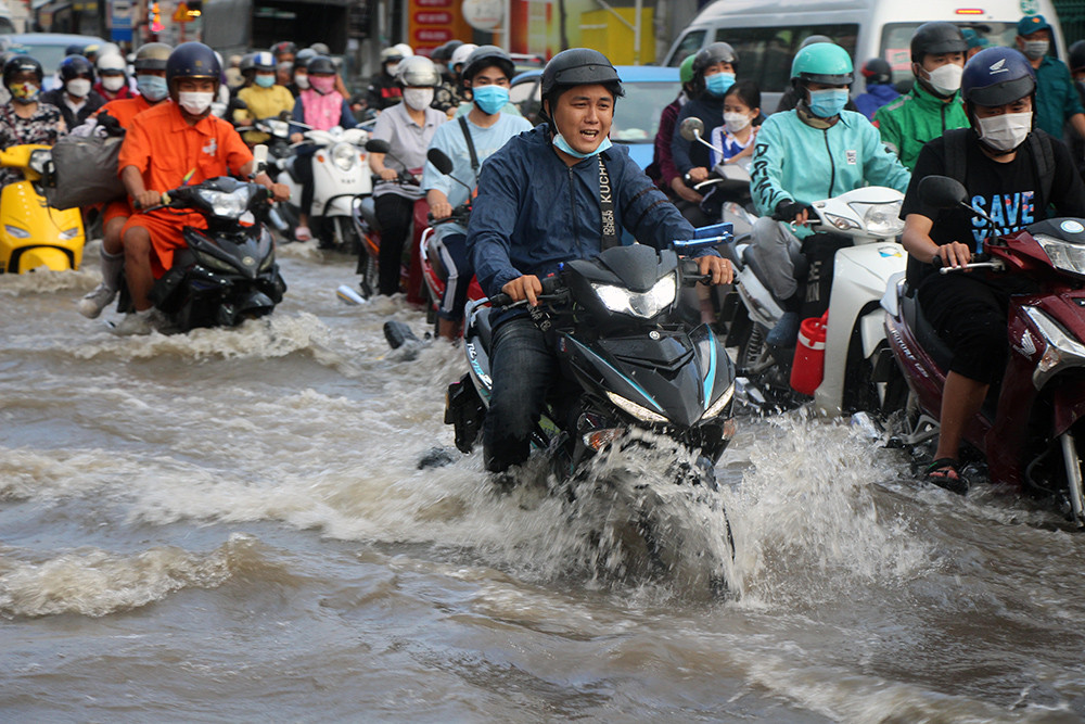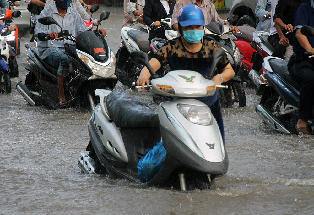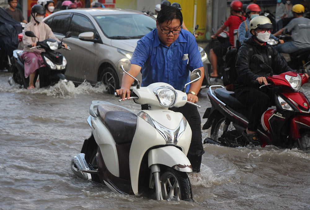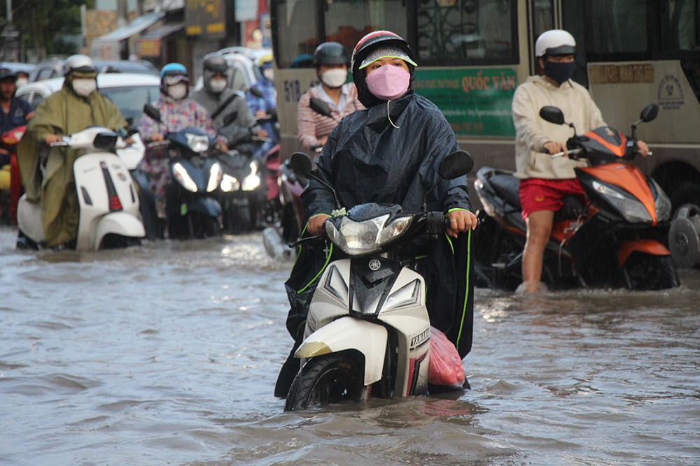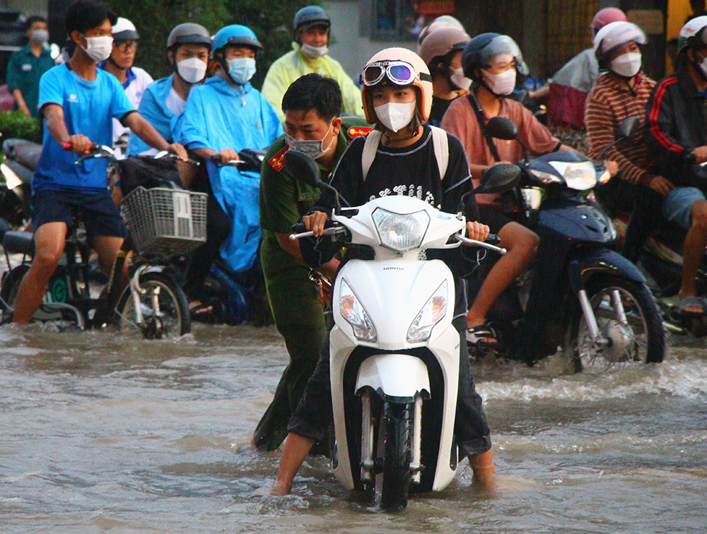 “Đi đoạn đường dài chưa tới 1km nhưng mất hơn 30 phút, giờ xe còn chết máy”, chị Ly than thở khi vừa được lực lượng thanh niên xung phong hỗ trợ đẩy xe qua đoạn ngập sâu.