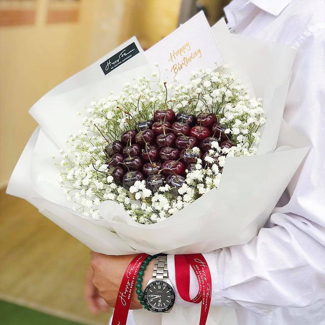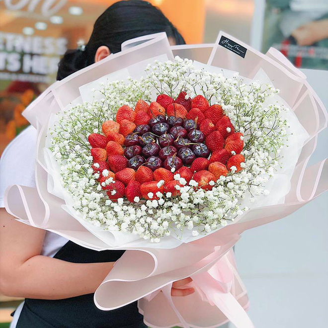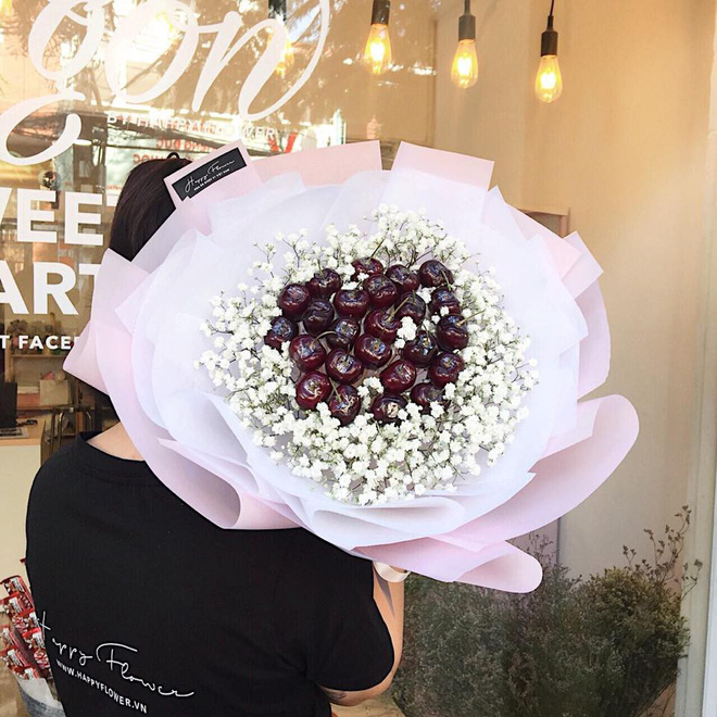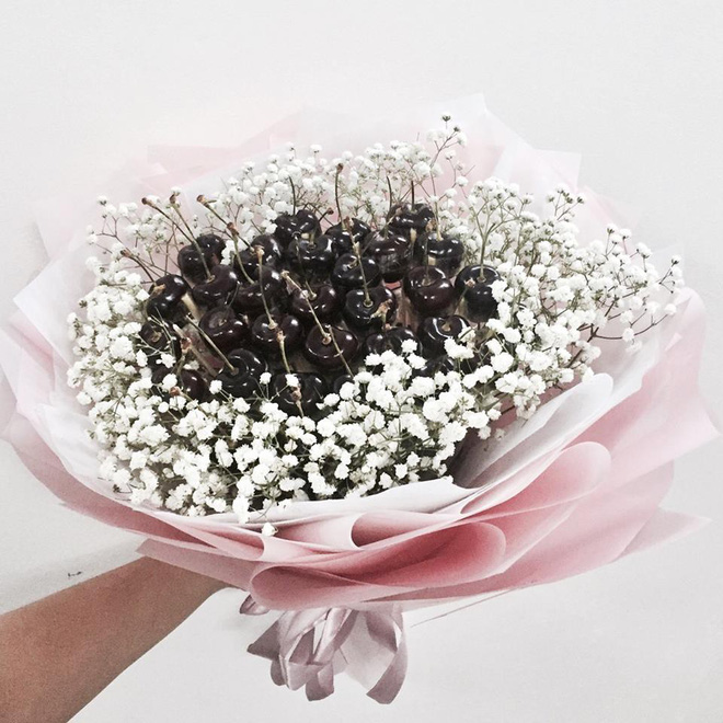 Bên cạnh dâu tây hot từ năm ngoái, năm nay có cả bó hoa cherry dành cho những ai chịu chơi rồi đây, đảm bảo vừa đẹp vừa sang luôn.