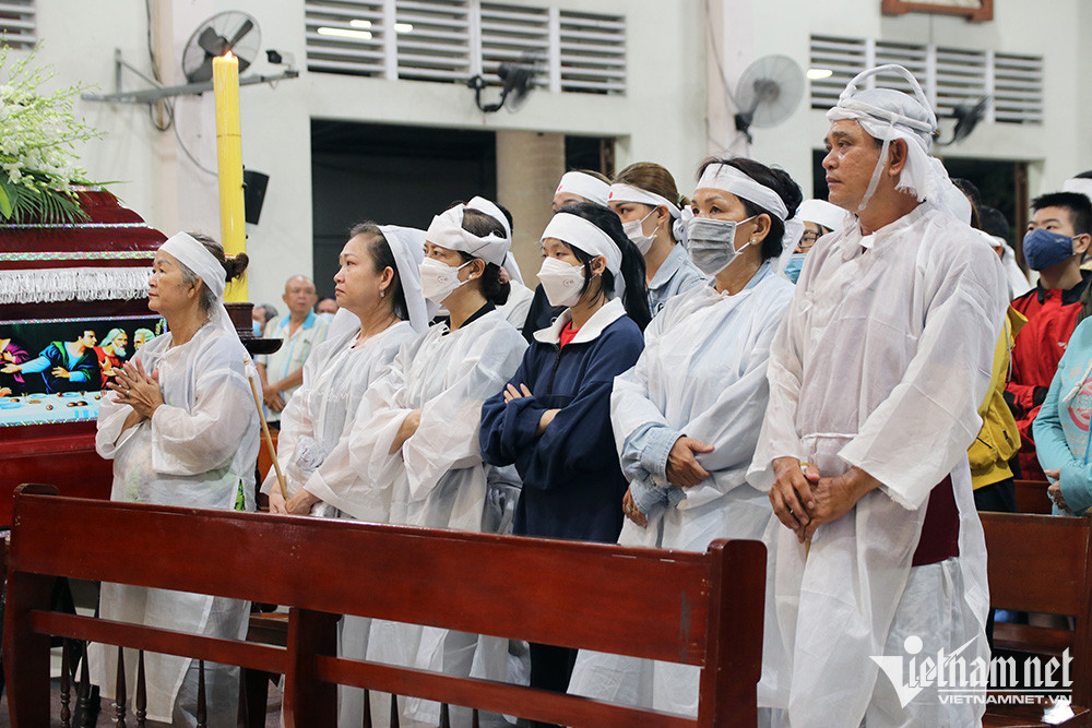 Lễ di quan của 'vua nhạc sến' Vinh Sử diễn ra sáng 13/9 tại nhà riêng ở quận Bình Tân, TP.HCM.Sau 11 năm chống chọi với ung thư trực tràng, nhạc sĩ Vinh Sử qua đời sáng 10/9 tại bệnh viện Nhân dân Gia Định, thọ 79 tuổi.Anh Bùi Vinh Dự - con trai út nhạc sĩ Vinh Sử khoanh tay, trầm ngâm nhìn lại những hình ảnh của cha mình.Gia đình, bạn bè cố nghệ sĩ đau buồn, tiếc thương người nghệ sĩ tài danh qua đời sau thời gian chiến đấu với bệnh tật. Tang lễ diễn ra từ khá sớm nên không có nhiều nghệ sĩ đến, khoảng 6h linh cữu của nhạc sĩ Vinh Sử được đưa ra nhà thờ. Khi Vinh Sử mất, nhiều bạn bè và người thân trong gia đình nói như mất đi một người tri kỷ. Ông luôn tạo được thiện cảm tốt đẹp và là người bầu bạn, nói chuyện rất hợp ý với mọi người dù cũng là một người có những quan điểm sống khá khác biệt.Bà Nguyễn Ngọc Lệ - vợ cũ nhạc sĩ Vinh Sử. Nhạc sĩ Vinh Sử thường ở một mình để sáng tác nhưng kể từ mùa dịch, nhạc sĩ yếu dần nên bà lui tới để chăm sóc. Bà cũng là người túc trực bên giường bệnh chăm sóc Vinh Sử trong những năm bệnh tình của nhạc sĩ chuyển biến nặng.Quang cảnh gia đình làm lễ cho nhạc sĩ Vinh Sử.Chị Bùi Vinh Diễm - con gái "vua nhạc sến" vẫn chưa ổn định khi mất đi người cha thân thiết. Chị chia sẻ với VietNamNet rất tiếc nuối vì không thể ở gần chăm sóc ba trong những năm cuối đời. Thuở nhỏ, chị Diễm được nhạc sĩ Vinh Sử dạy dỗ, tâm sự nhiều câu chuyện trong cuộc sống. Trong đó, sự quyết tâm, lòng kiên trì, trung thực chính là bài học lớn theo chị đến tận hôm nay. Trong ký ức của chị, nhạc sĩ là người sống tình cảm và tự lập. Ông có một cuộc đời phiêu lưu, có sướng khổ, vui buồn nên đã cho ra những sáng tác để đời.Đúng 4h30, lễ di quan Vinh Sử được tiến hành. Linh cữu ông được đưa ra khỏi nhà riêng đến Thánh đường Giáo xứ Bình Thuận để tổ chức Thánh lễ an táng. Anh Bùi Vinh Dự mang di ảnh của cha ra xe tang.Người thân mang những hình ảnh ghi lại dấu ấn nghề nghiệp khó quên của nhạc sĩ Vinh Sử.Nhạc sĩ Vinh Sử sinh năm 1944, được mệnh danh là "ông vua nhạc sến", sáng tác với nhiều bút danh như: Bồng Nga Nữ, Chế Huyền Trân, Cô Phượng, Diễm Nhi, Đức Vượng, Hàn Ni, Linh Ngân,.... Ông là tác giả của loạt nhạc phẩm nổi tiếng như: Gõ cửa trái tim, Vòng nhẫn cưới, Yêu người chung vách, Chuyến xe lam chiều... Ngày 10/9, nhạc sĩ Vinh Sử qua đời sau 11 năm chống chọi với ung thư trực tràng, để lại cho đời một gia tài sáng tác đồ sộ. Linh cữu của nhạc sĩ Vinh Sử được đưa tới nhà thờ để làm lễ trước khi đưa đi an táng tại nghĩa trang Hoa viên Bình Dương.Đoàn tang lễ tiến và nhà thờ lúc gần 6h sáng. Di ảnh và linh cữu nhạc sĩ Vinh Sử trong nhà thờ. Nhạc sĩ Vinh Sử qua đời để lại hàng trăm nhạc phẩm bolero ghi dấu ấn trong lòng người mộ điệu. Nội dung các ca khúc thường kể về những mối tình trắc trở.Gia đình nhạc sĩ Vinh Sử lặng lẽ trong nhà thờ. Trong ký ức của khán giả, Vinh Sử là nhạc sĩ có ảnh hưởng lớn đến dòng nhạc bolero nên sự ra đi của ông là một mất mát rất lớn.Ngoài gia đình, không nhiều nghệ sĩ có mặt để tiễn biệt 'vua nhạc sến' Vinh Sử.