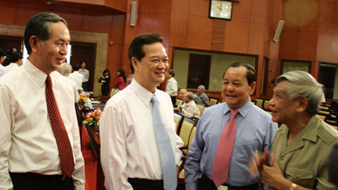 | Các thế hệ lãnh đạo đất nước cùng có mặt ở hội thảo. Ảnh: T.Thiện |