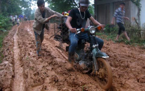 Gặp vợ chồng anh Hà Văn Thái, trú tại xóm 2, xã Phú Sơn đưa con đi khám bệnh về trên con đường xã Tiên Kỳ nói: “Vợ chồng tôi đưa con đi viện trên đoạn đường chưa đầy 10 cây số phải mất gần 2 giờ đồng hồ. Con ốm đau, muốn đi nhanh cũng không được, hai vợ chồng cứ thay nhau bồng con vừa đi vừa lo. Hôm nay đường thế này còn đỡ, mấy hôm trước mưa lội sình lấy một người đi còn khó chứ chưa nói tối chuyện bồng bế thêm ai được nữa”.