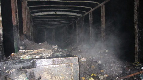 Khoảng 21giờ đêm 15/4, xảy ra một vụ cháy hy hữu thiêu rụi một toa tàu trên trục đường ray số 5, km 308, thuộc địa phận ga Quán Hành.