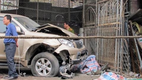 Tại hiện trường, chiếc xe Prado bị nổ lốp trước, phần đầu của chiếc xe bị hư hỏng nặng, nắp capô bị kênh lên, nhiều bộ phận bị phá vỡ.
