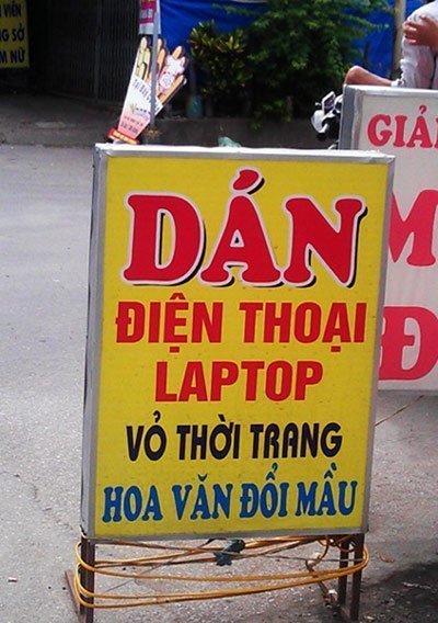 | Những biển quảng cáo dán điện thoại, laptop mọc lên ngày càng nhiều |