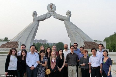 Các sinh viên tốt nghiệp Đại học Columbia, Mỹ chụp hình lưu niệm khi tham quan Triều Tiên. |