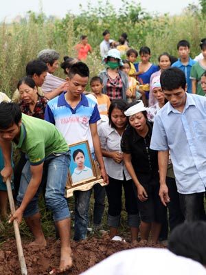 Thi thể các nạn nhân nối đuôi nhau đưa về nghĩa trang Tráng Việt.