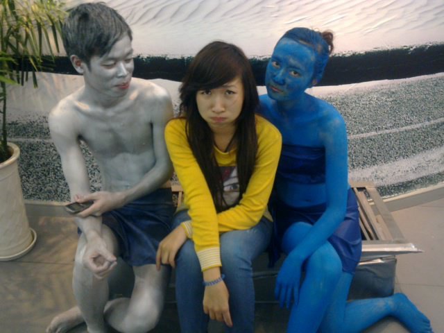 Lại có em bé thấy nhân tượng đột nhiên chớp mắt thì sợ quá khóc thét lên. Gặp phải các trường hợp hay ho như thế, dù chúng mình đang đứng tạo dáng làm tượng cũng phải phì cười.”