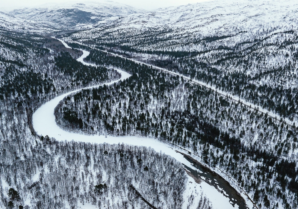 Trong khuôn hình của Hoàng Lê Giang, thiên nhiên hiện ra như bức tranh trừu tượng, được dệt nên từ những mảng màu tự nhiên: Sắc xanh trầm mặc của cây cối, trắng xóa tinh khiết của tuyết, những đường nét gồ ghề của núi rừng.