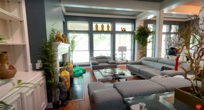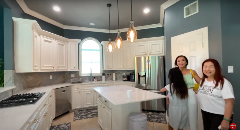 Phòng khách thiết kế mở là nơi thường xuyên tụ tập gia đình và bạn bè. Khu vực bếp hiện đại và tiện nghi, nơi bà trổ tài nấu nướng. Phòng ngủ đơn giản nhưng sang trọng, mang đến sự thư giãn. Căn nhà còn được trang bị thang máy để thuận tiện di chuyển và chuyển đồ. Phía sau nhà là mảnh vườn nhỏ xinh đẹp, nơi bà thư giãn, ngắm cảnh và tận hưởng không khí trong lành.