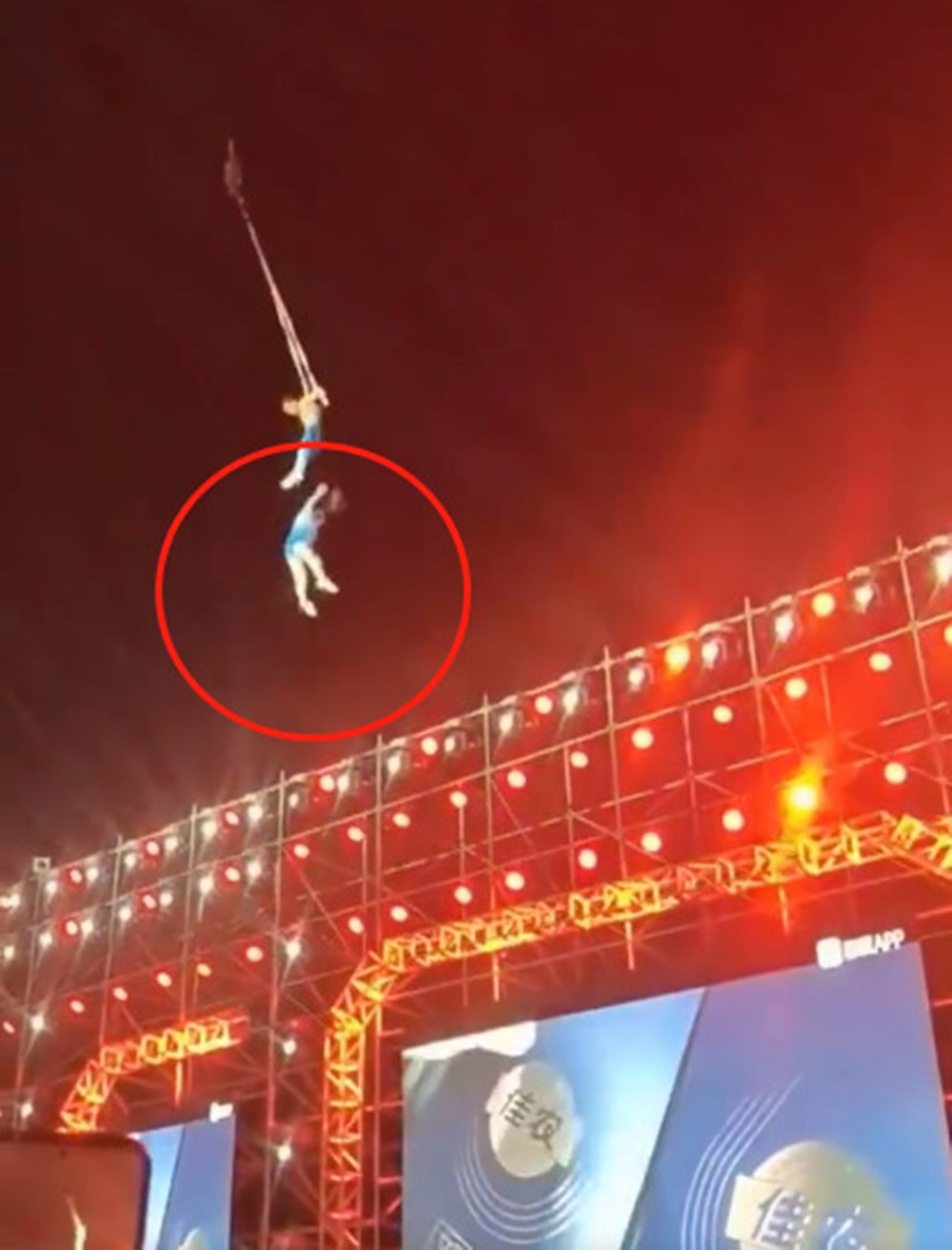 Một số video hiện trường cho thấy, đôi diễn viên nam và nữ thực hiện màn nhào lộn trên cao, trong lúc nhấc bổng, nữ diễn viên bất ngờ rơi từ độ cao hơn 10 m xuống sân khấu. Cơ quan điều tra cho biết, không có bất cứ biện pháp an toàn cho các nghệ sĩ.