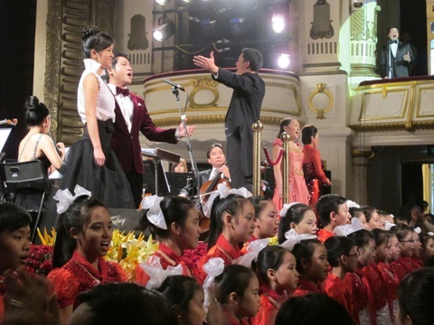 Các ca sĩ: Hồng Nhung, Trọng Tấn, Hà Phạm Thăng Long, Mỹ Linh, Đăng Dương cùng lĩnh xướng trong màn hợp xướng "Việt Nam quê hương tôi" do hai dàn hợp xướng: Đại học SPNT và Cung Thiếu nhi hát với Dàn nhạc GHVN.
