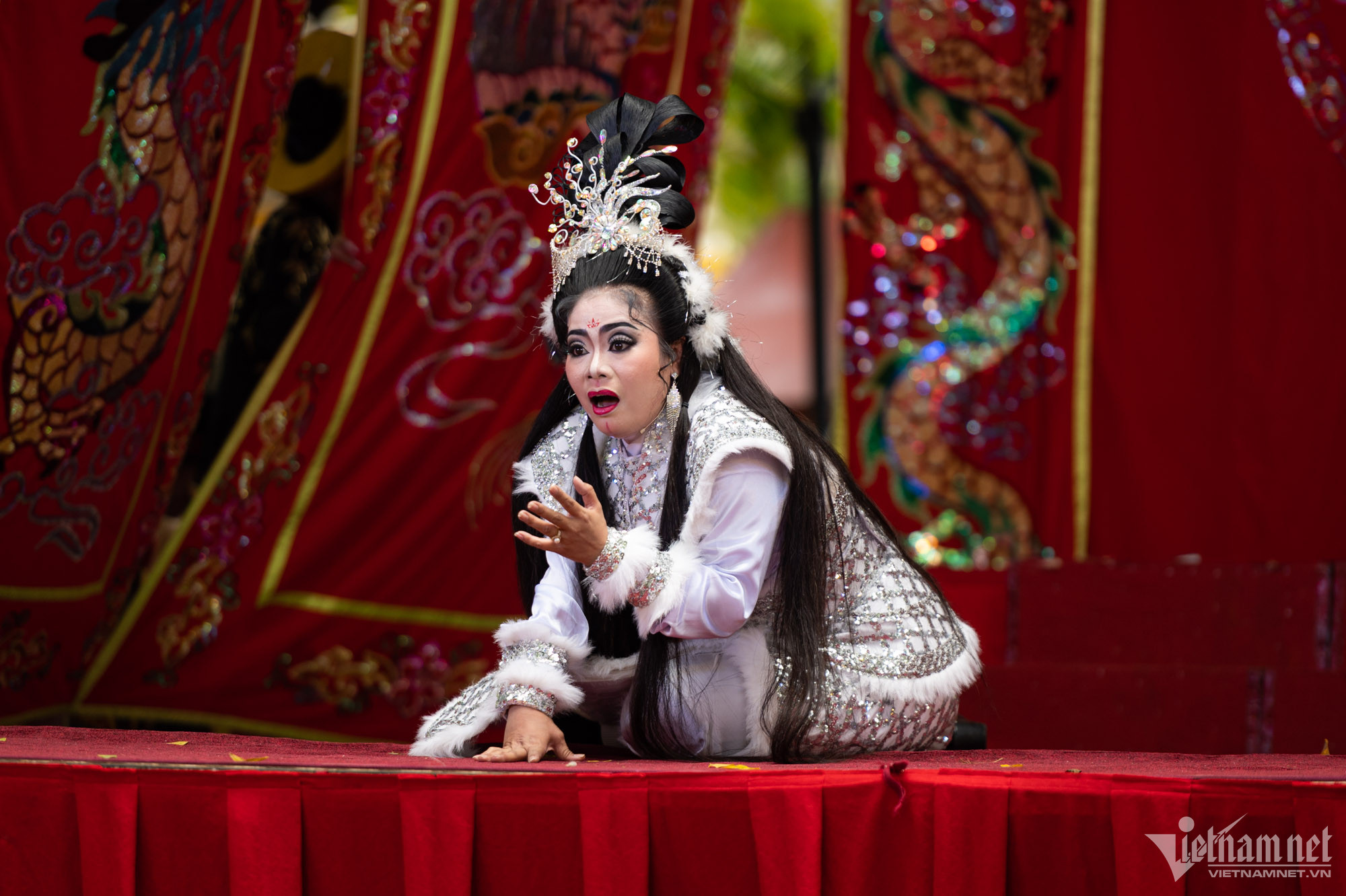 Chương trình kéo dài 1 tiếng với khoảng 3 trích đoạn được biểu diễn. Trong hình là trích đoạn "Tiết Đinh San cầu Phàn Lê Huê" và "Nguyệt Cô hóa cáo".