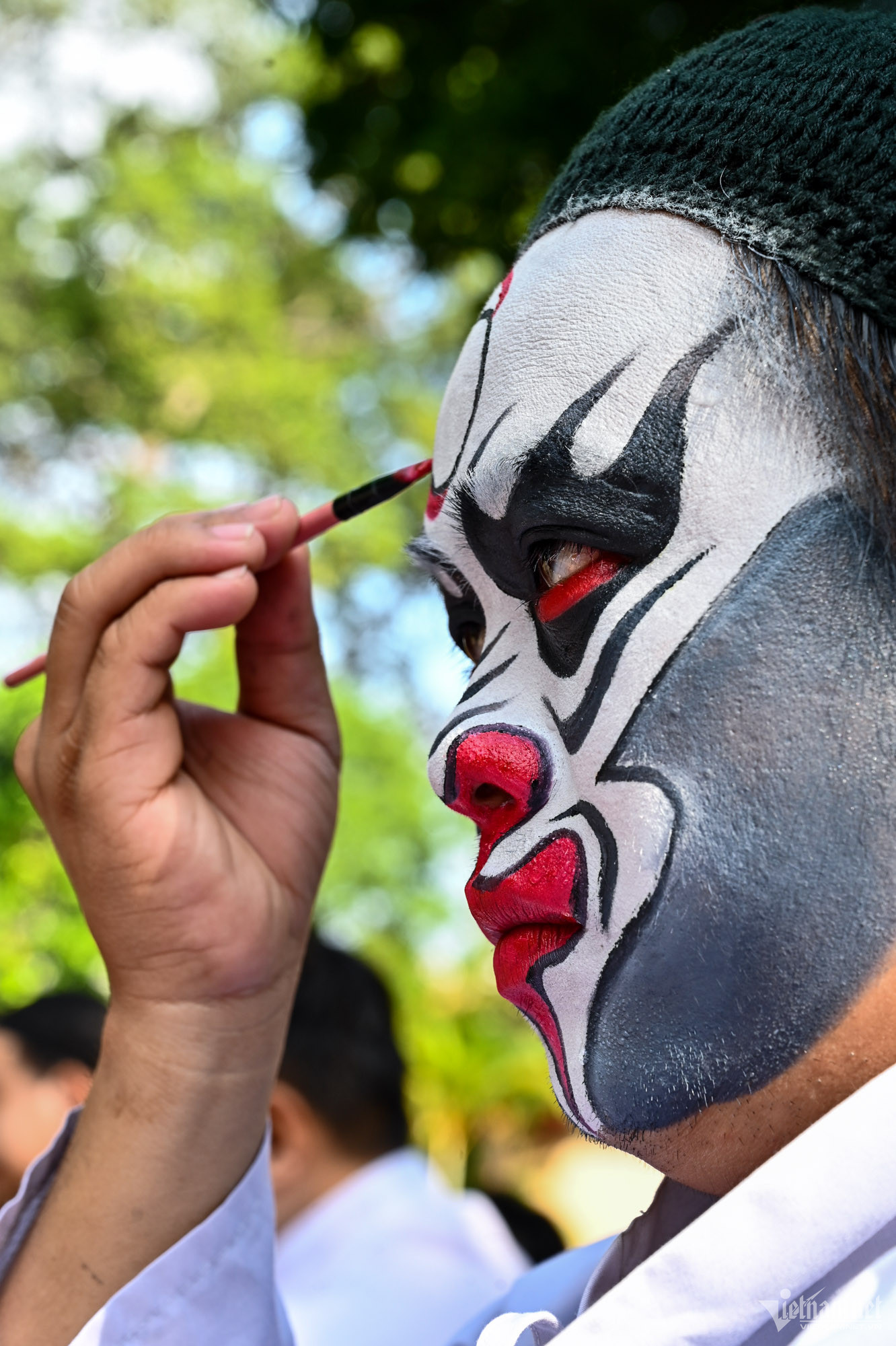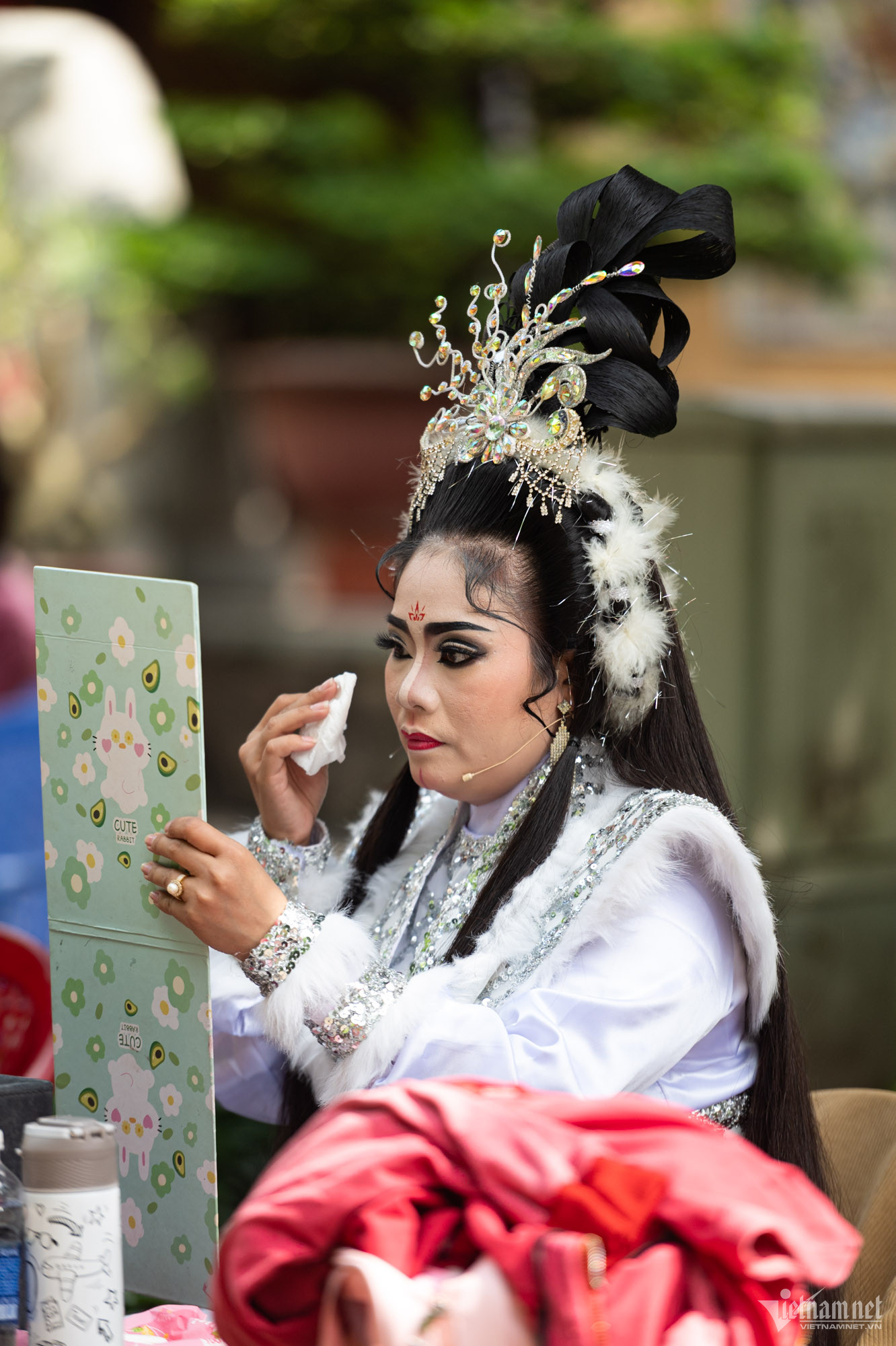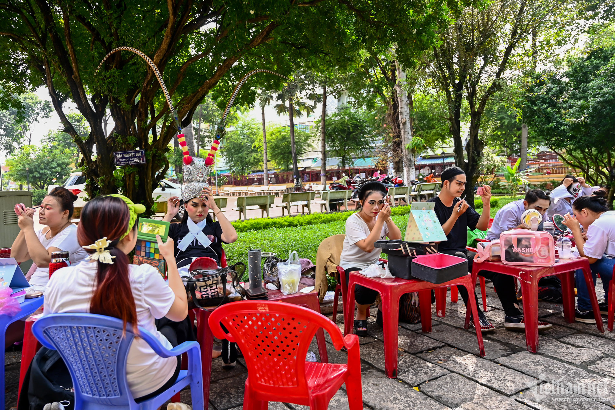 Trước mỗi buổi biểu diễn, các nghệ sĩ có mặt trước 2 tiếng để chuẩn bị. Họ phải tự biết cách trang điểm, vẽ mặt nạ cho chính mình theo từng vai diễn, từng loại nhân vật.