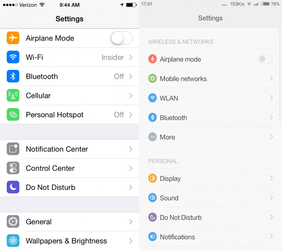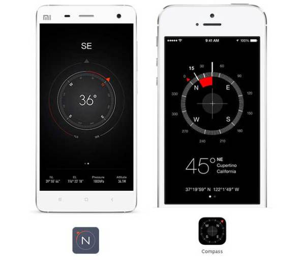 Khi đặt giao diện MIUI 6 và iOS 7 cạnh nhau, không thể phủ nhận một điều Xiaomi đã lấy cảm hứng quá nhiều từ Apple. Dưới đây là một số ví dụ cho thấy rõ điều đó (MIUI 6 bên trái, iOS 7 bên phải):