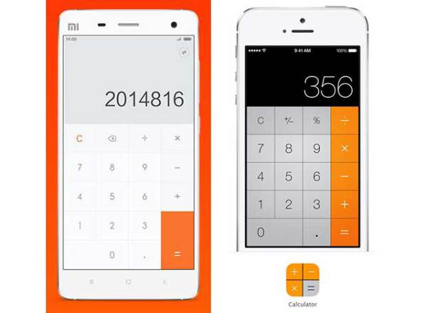 MIUI 6 là nền tảng di động trên smartphone Mi 4 của Xiaomi, trong khi bản thân Mi 4 lại khá giống với iPhone 5. Phiên bản này sở hữu thiết kế phẳng, nhấn mạnh vào sự đơn giản và màu sắc tương tự iOS 7 trên iPhone.