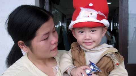 Ôm đứa con gái Bùi Thuý Diệu mới 2 tuổi trên tay, người mẹ trẻ Đinh Thị Chiều (quê Lương Sơn – Hòa Bình) cố gạt nước mắt để chọc cười cho con. Chiều mới 19 tuổi, lần đầu làm mẹ, cô còn chưa vơi hạnh phúc thì nay phải gánh cái tin con mang một khối u ác ở tai. Đưa con lên Hà Nội chữa trị, người mẹ vẫn ngơ ngác như người mất hồn, đôi mắt lúc nào cũng sưng mọng vì khóc nhiều.