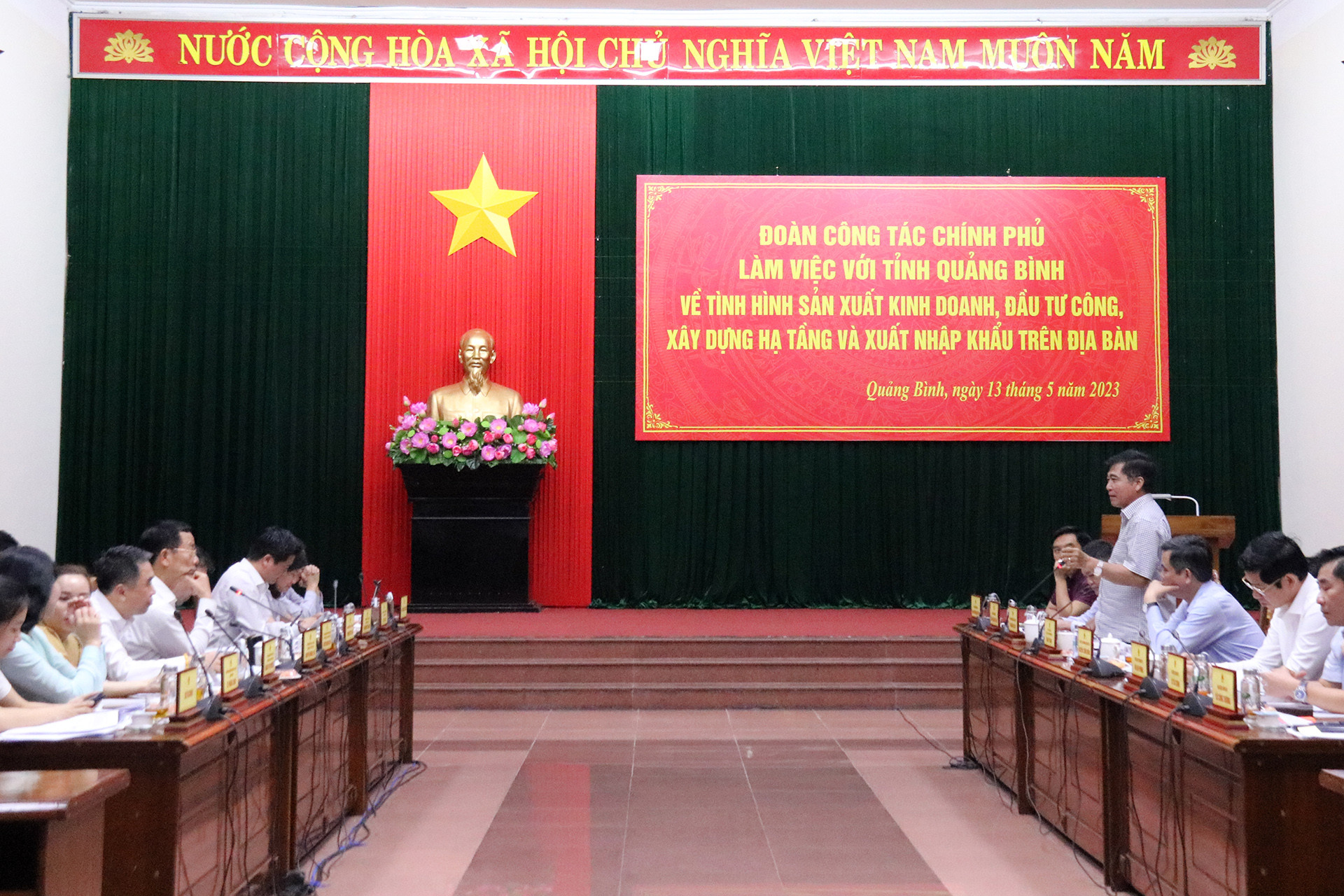 Tại buổi làm việc, lãnh đạo tỉnh Quảng Bình đã nêu lên 22 nội dung kiến nghị, đề xuất thuộc thẩm quyền của Chính phủ và các bộ, ngành Trung ương nhằm giúp tỉnh giải quyết, tháo gỡ các khó khăn, vướng mắc trong thực hiện các giải pháp thúc đẩy sản xuất kinh doanh, tăng cường kinh tế; giải ngân nguồn vốn đầu tư công, xây dựng hạ tầng và xuất nhập khẩu của địa phương.