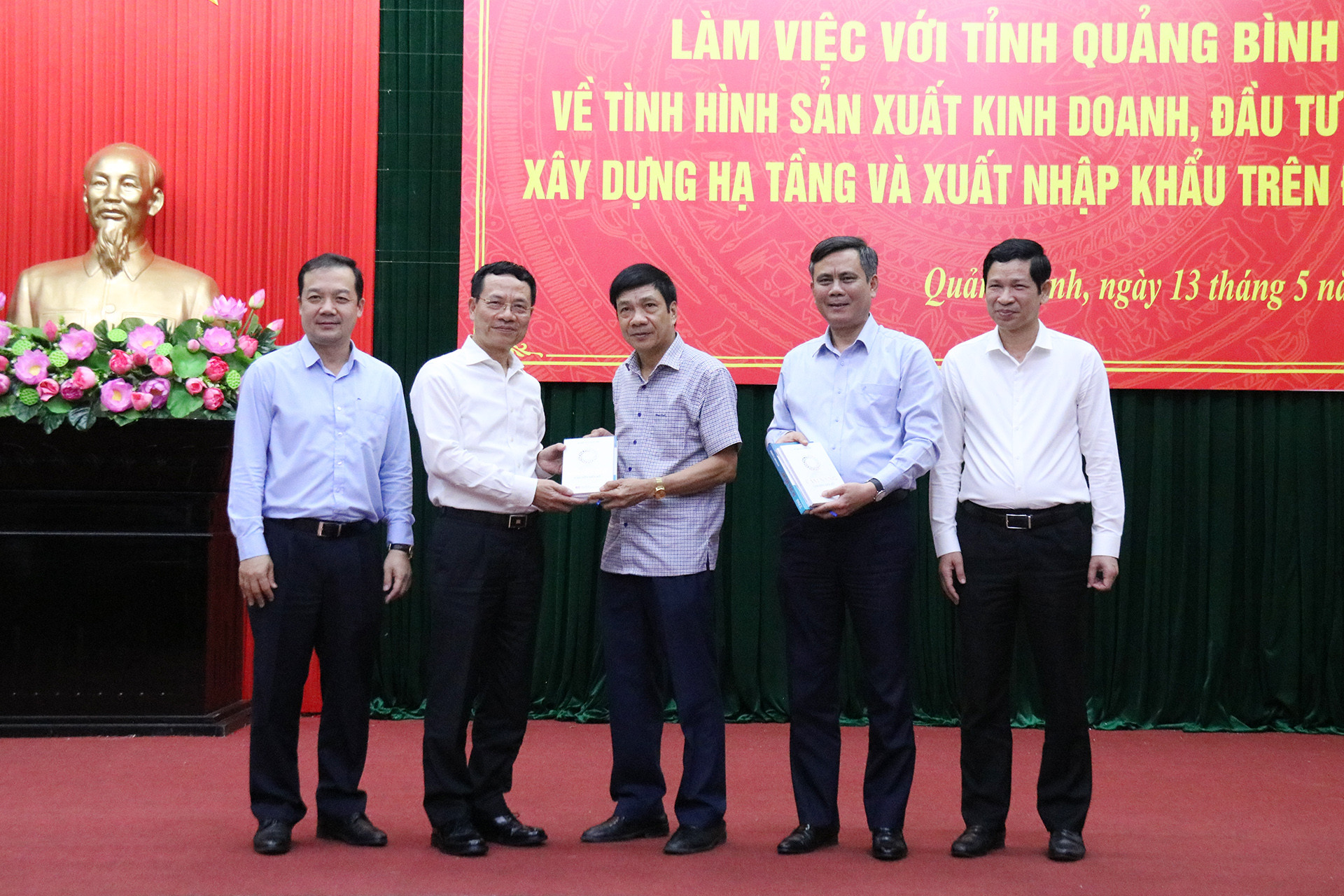 Thực hiện ý kiến chỉ đạo của Thủ tướng Chính phủ tại Công điện số 238/CĐ-TTG ngày 10/4/2023 về thúc đẩy sản xuất kinh doanh, đầu tư xây dựng và xuất nhập khẩu trong thời gian tới, chiều 13/5, tại trụ sở UBND tỉnh Quảng Bình, Bộ trưởng Bộ TT&TT Nguyễn Mạnh Hùng dẫn đầu đoàn công tác của Chính phủ đã có buổi làm việc với địa phương này.