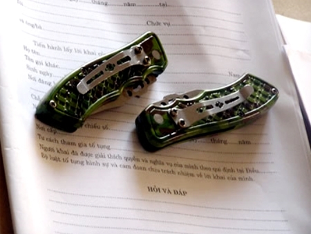 | Hai con dao Thành dùng khống chế nạn nhân. |