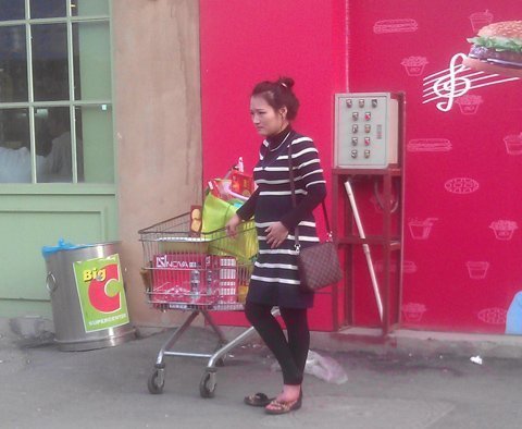 Bà bầu thở phào nhẹ nhõm sau khi thoát khỏi cảnh chen lấn xô đẩy trong siêu thị.