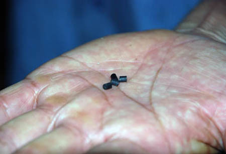 | Những viên đá màu đen, hình trụ dài như viên đá lửa mà ông Hưng khẳng định là thuốc nổ |