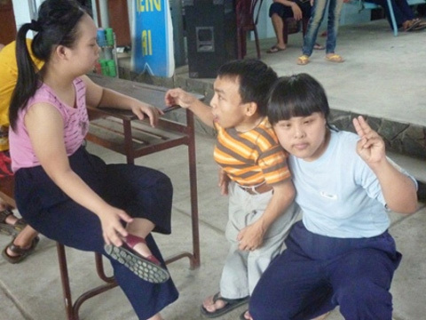 to lớn gấp nhiều lần, có em còn mắc nhiều khuyết tật vừa câm điếc, vừa thiểu