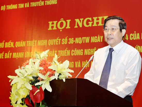 “Việc tuyên truyền, phổ biến, nâng cao nhận thức, quán triệt thực hiện NQ 36 có ý nghĩa rất quan trọng. Tôi đề nghị các cơ quan truyền thông báo chí, các đài phát thanh truyền hình, nhất là các cơ quan quản lý báo chí và các đơn vị báo chí, truyền thông của Bộ cần có kế hoạch đẩy mạnh, thường xuyên liên tục tuyên truyền phổ biến NQ 36, nâng cao nhận thức về vai trò, vị trí của CNTT, các nhiệm vụ, giải pháp cần thực hiện, đồng thời biểu dương các tập thể, cá nhân có thành tích xuất sắc trong việc triển khai NQ 36”, Bộ trưởng nói.