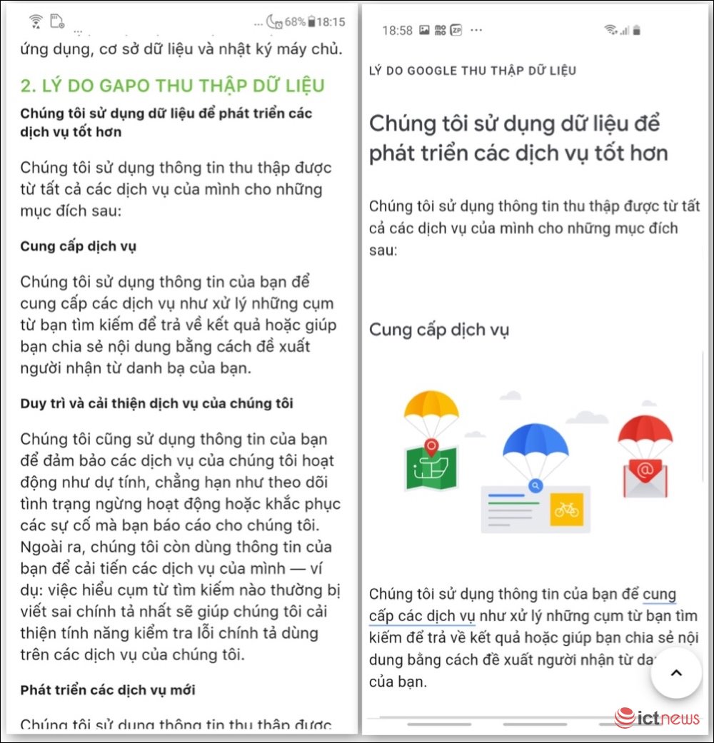 Khác biệt ở hai nội dung này là phía Google... có ảnh minh hoạ. |