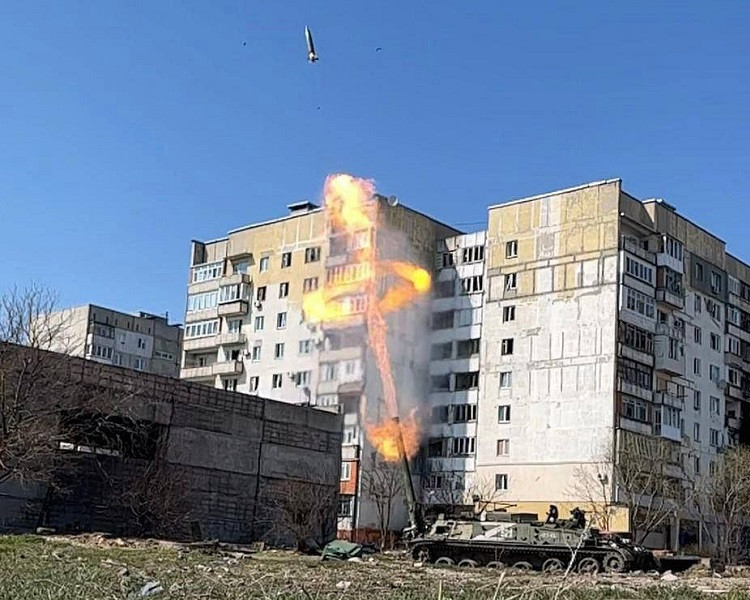 Trang quân sự The Drive hôm 13/5 đã đăng tải một bức ảnh được cho là quân đội Nga khai hỏa cối tự hành 2S4 vào nhà máy thép Azovstal thuộc thành phố Mariupol, nơi binh sĩ Ukraine đã cố thủ trong nhiều tuần qua.