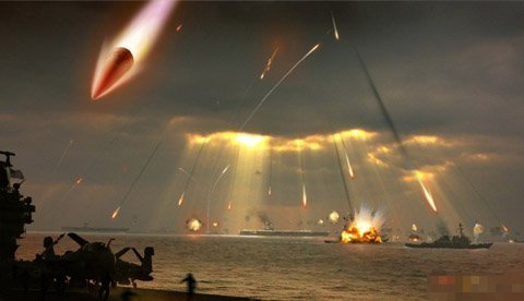 Hình minh họa cuộc không kích giả tưởng bằng tên lửa đạn đạo chống hạm DF-21D của Trung Quốc |