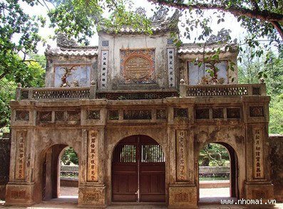 Cổng chính giữa có đặt một tấm bia đá được dựng từ năm 1901 do Cao Xuân Dục soạn, ghi lại những tâm sự của Thái giám triều Nguyễn: "Trong khi sống chúng tôi tìm thấy ở đây sự yên lặng, khi đau ốm chúng tôi đến lánh mình và sau khi chết được an táng cùng nhau. Sống hay chết ở đây chúng tôi đều được yên tĩnh”.