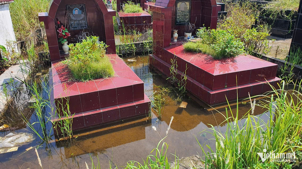 “Cả khu nghĩa trang như cái ao tù, nước đọng, bốc mùi hôi thối. Không ai vào dọn dẹp hay thắp hương được, thương xót người thân mà đành chịu”, bà Nguyễn Thị H., một người dân địa phương nghẹn ngào nói.