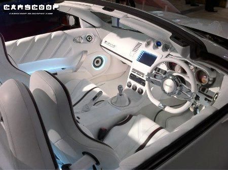 ... với nội thất trắng tinh khôi (Ảnh: Carscoop)