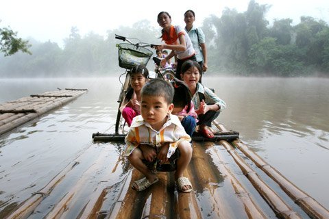 Cùng với những em nhỏ ở bản Phạc Giàng (Xã Hùng Việt, Tràng Định, Lạng Sơn) bé trai này hàng ngày vẫn vượt sông Kỳ Cùng trên chiếc bè nửa chìm nửa nồi để đến lớp mẫu giáo bên kia bờ sông. Không có người lớn đưa đón, không có bất kỳ phương tiện cứu sinh nào trên những chiếc bè này.