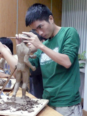 Phần lớn học viên là những người chỉ chuyên làm việc với máy tính chứ không quen “nghịch đất” thế này. Nhưng, Nguyễn Huy Sơn - Đồ họa viên 2D, vẫn rất tập trung: “Với 1 đồ họa viên VNG - người đang nghiên cứu và phát triển những sản phẩm cho hàng triệu người dùng thì việc vẽ không những cần phải đẹp mà còn phải chính xác nữa. Điêu khắc giúp tôi nắm vững tỉ lệ cấu trúc người và quan sát được cách đổ bóng”.