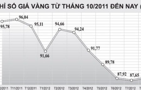 Nếu xét theo năm, sau khi tăng cao, tăng liên tục, tăng trong thời gian dài (tháng 12/2011 so với tháng 12/2001, giá vàng đã cao gấp trên 8,6 lần, bình quân một năm tăng 24%- còn được gọi là thập kỷ của vàng, với một sự “đúc kết” khá nổi tiếng là “vàng bỏ ống cũng có lãi”), từ tháng 10/2011 đến tháng 7/2012, giá vàng đã có xu hướng giảm xuống.