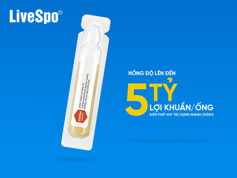 Tác dụng của LiveSpo Navax trong việc hỗ trợ điều trị triệu chứng viêm đường hô hấp cấp ở trẻ em nhiễm virus hô hấp hợp bào (RSV) được công bố tại: - Hội thảo “Giải pháp tiên phong hỗ trợ điều trị hiệu qủa viêm đường hô hấp trên trẻ em tại BV Nhi Trung ương ngày 10/12/2021 - Hội nghị Vi sinh Quốc Tế 2022 diễn ra tại Mỹ ngày 9-13/6/2022 LiveSpo Navax hiện được phân phối bởi công ty TNHH LiveSpo Pharma. Website: livespo.com Hotline: 1800.088.808 |