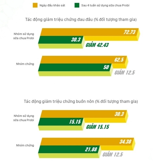 Qua nghiên cứu này, các nhà khoa học đã chứng minh được hiệu quả của sữa chua uống Vinamilk Probi với đối tượng nam giới sử dụng dụng rượu, bia thường xuyên thể hiện rõ ở 3 tác dụng: làm giảm men gan, giúp cải thiện chức năng gan; cải thiện nồng độ miễn dịch IgA và giúp hạn chế viêm loét dạ dày hành tá tràng; giảm triệu chứng đau đầu và buồn nôn.