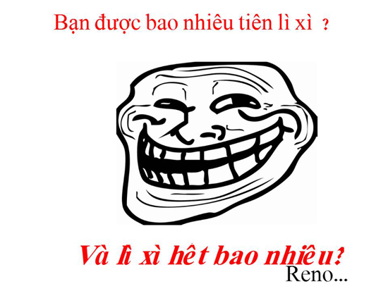 Nói về chuyện lì xì thì dịp Tết Giáp Ngọ, cư dân mạng cũng rất thích thú với một đoạn clip ngắn của kênh YouTube TGM kể về sự tích tục lệ lì xì theo cách khá nhộn (lì xì để trị con quỷ dữ chuyên “show hàng” với trẻ em). Chắc chắn những tràng cười nghiêng ngả là món lì xì lớn nhất mà cư dân mạng thu hoạch được sau những ngày Tết.