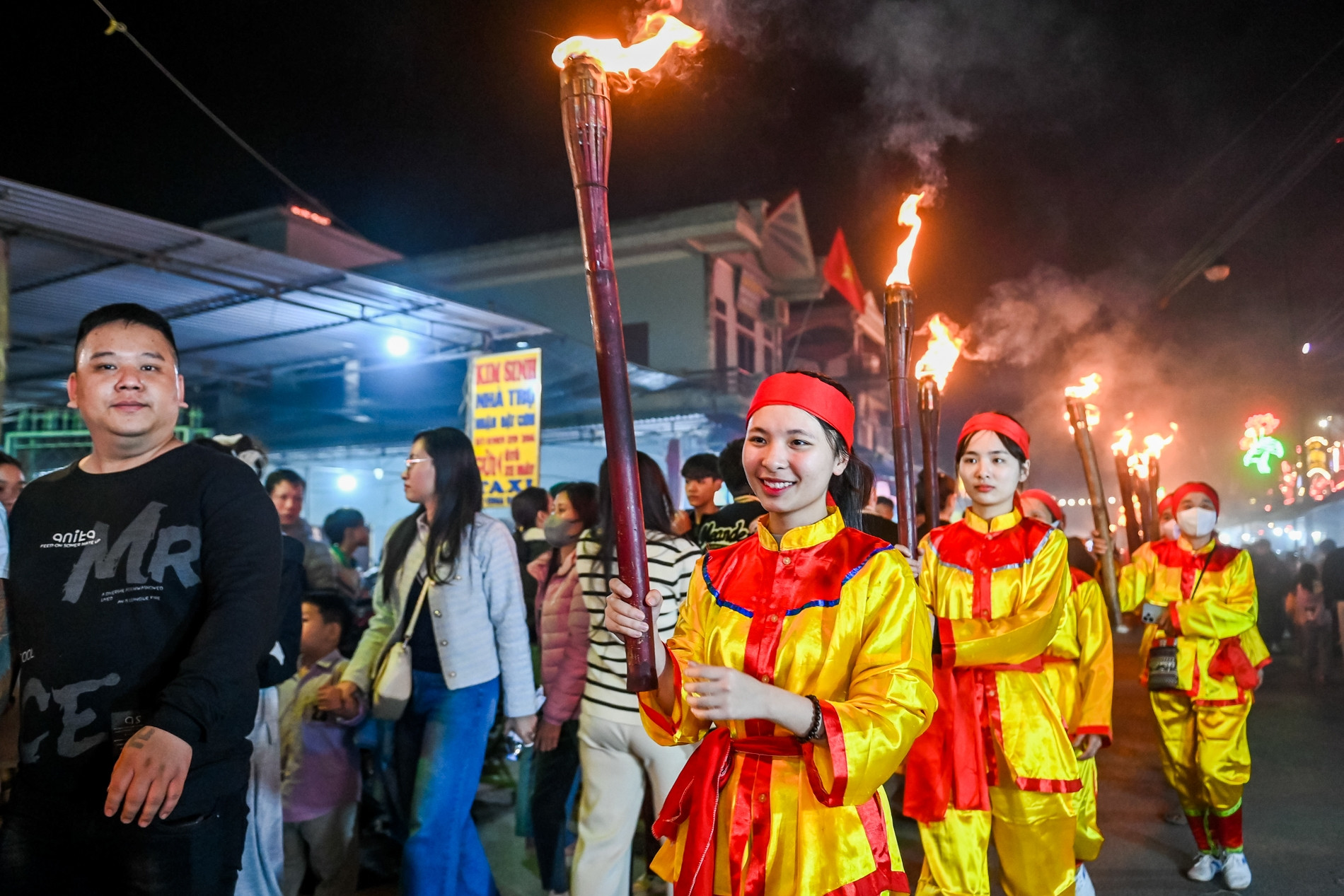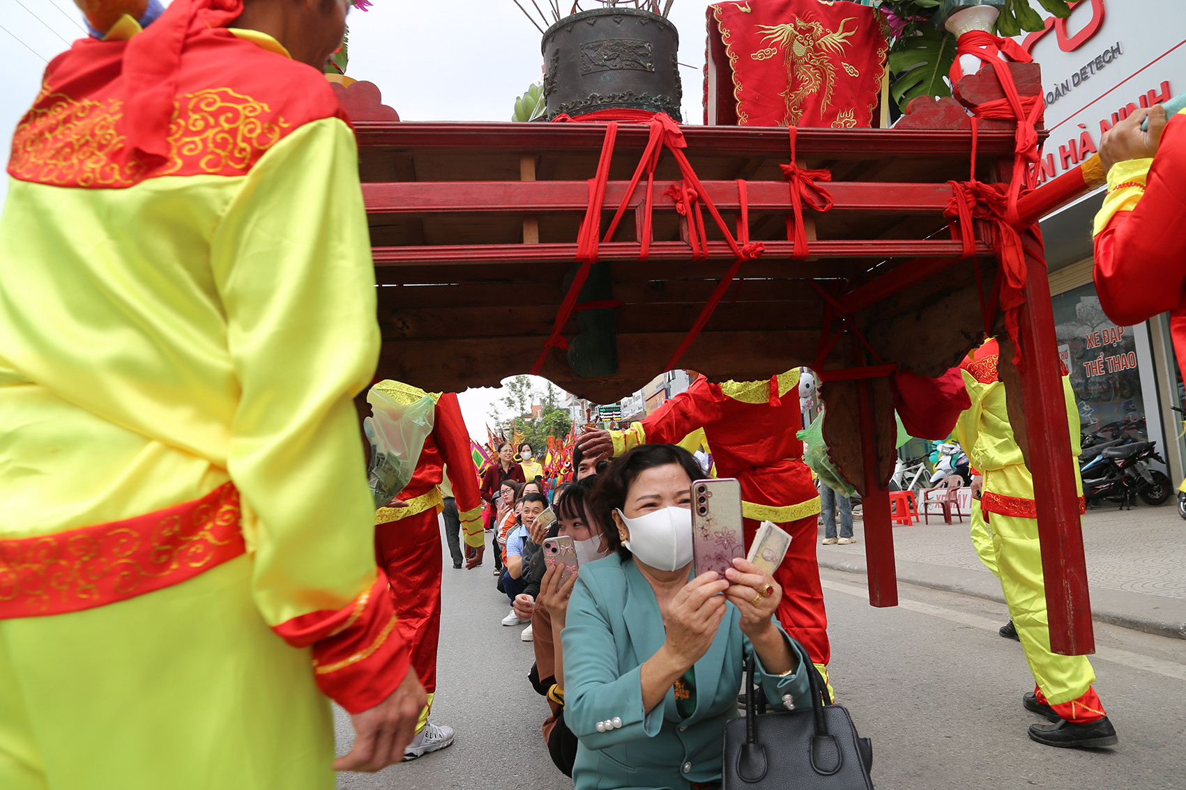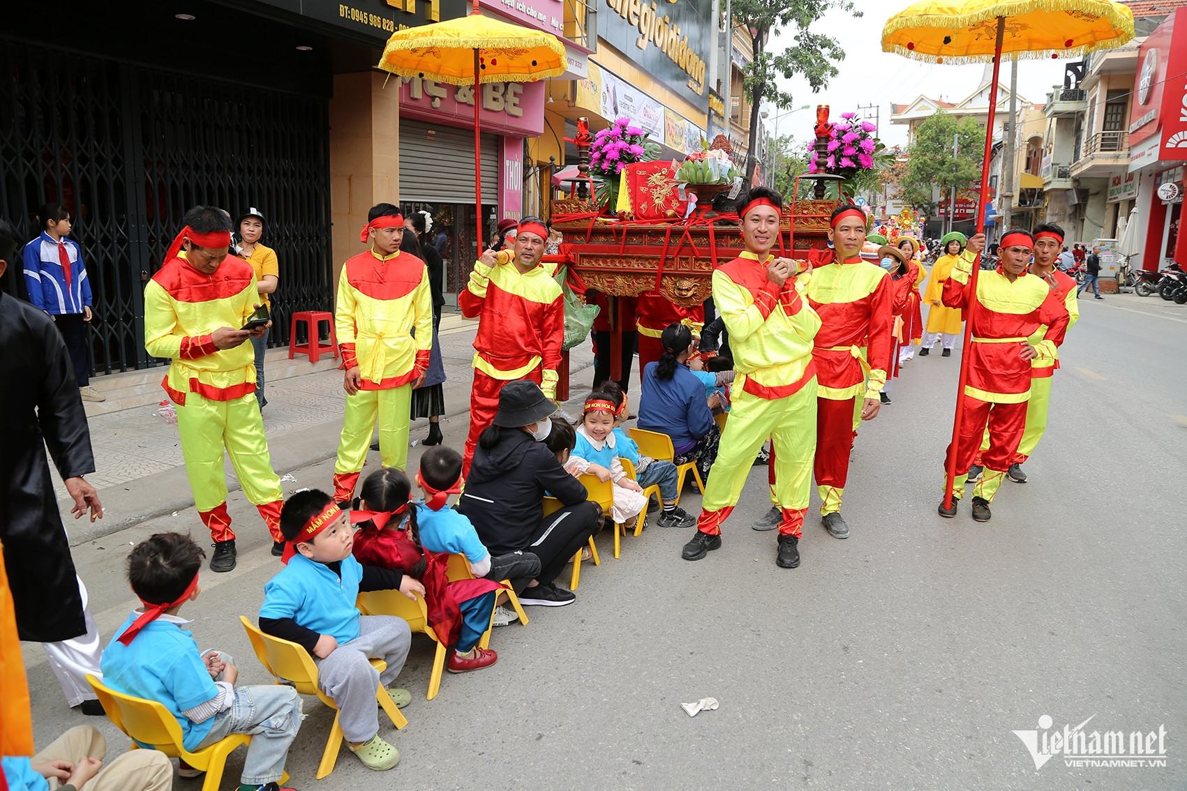 Đoàn rước đi đến đâu, người dân hai bên đường thắp hương và xếp hàng để chui qua kiệu của Đức Thánh Trần đến đó với mong muốn 1 năm mạnh khỏe, may mắn, bình an.