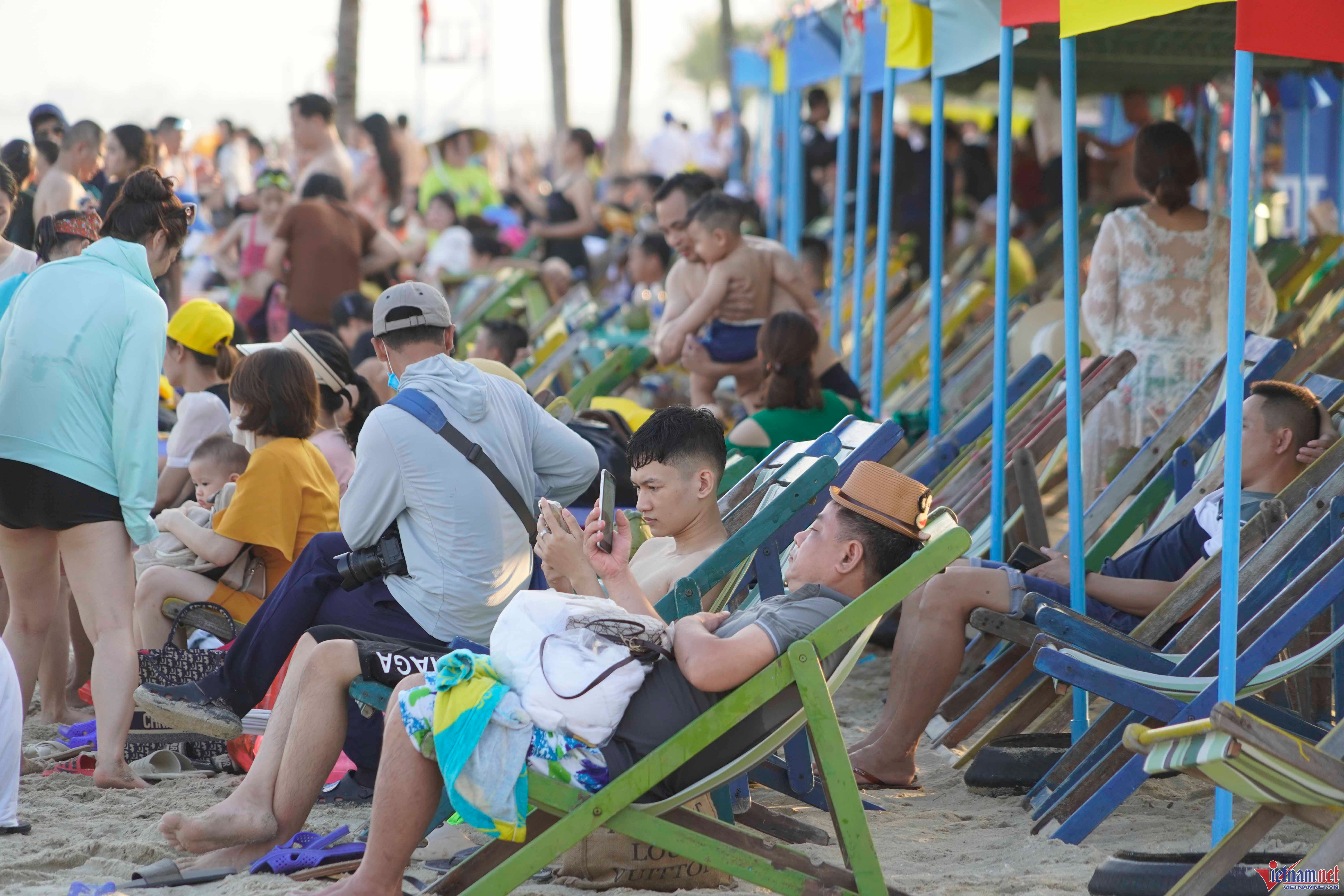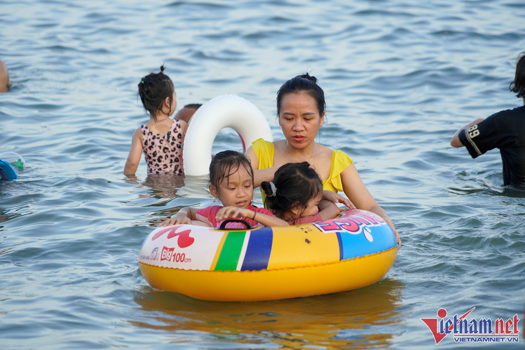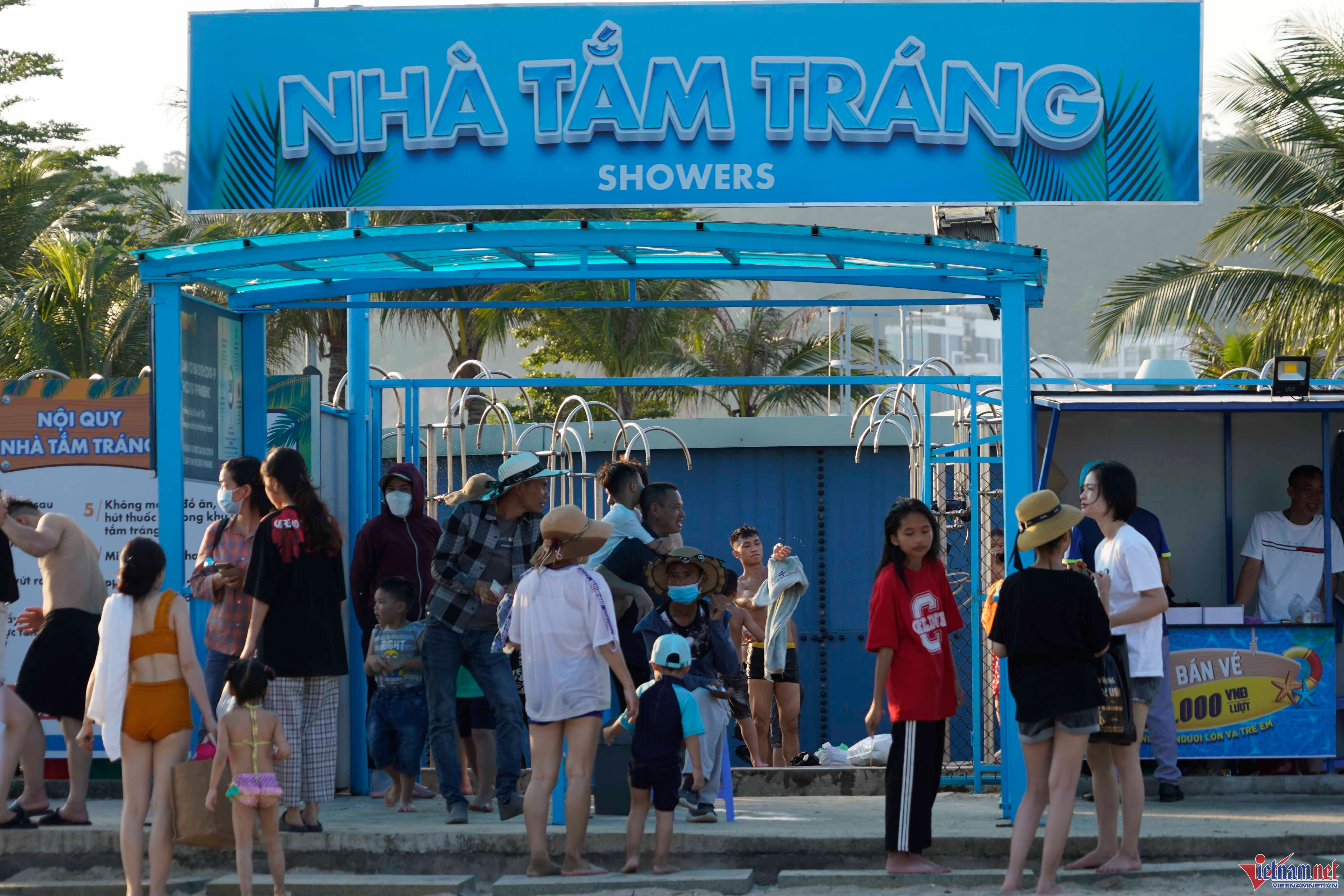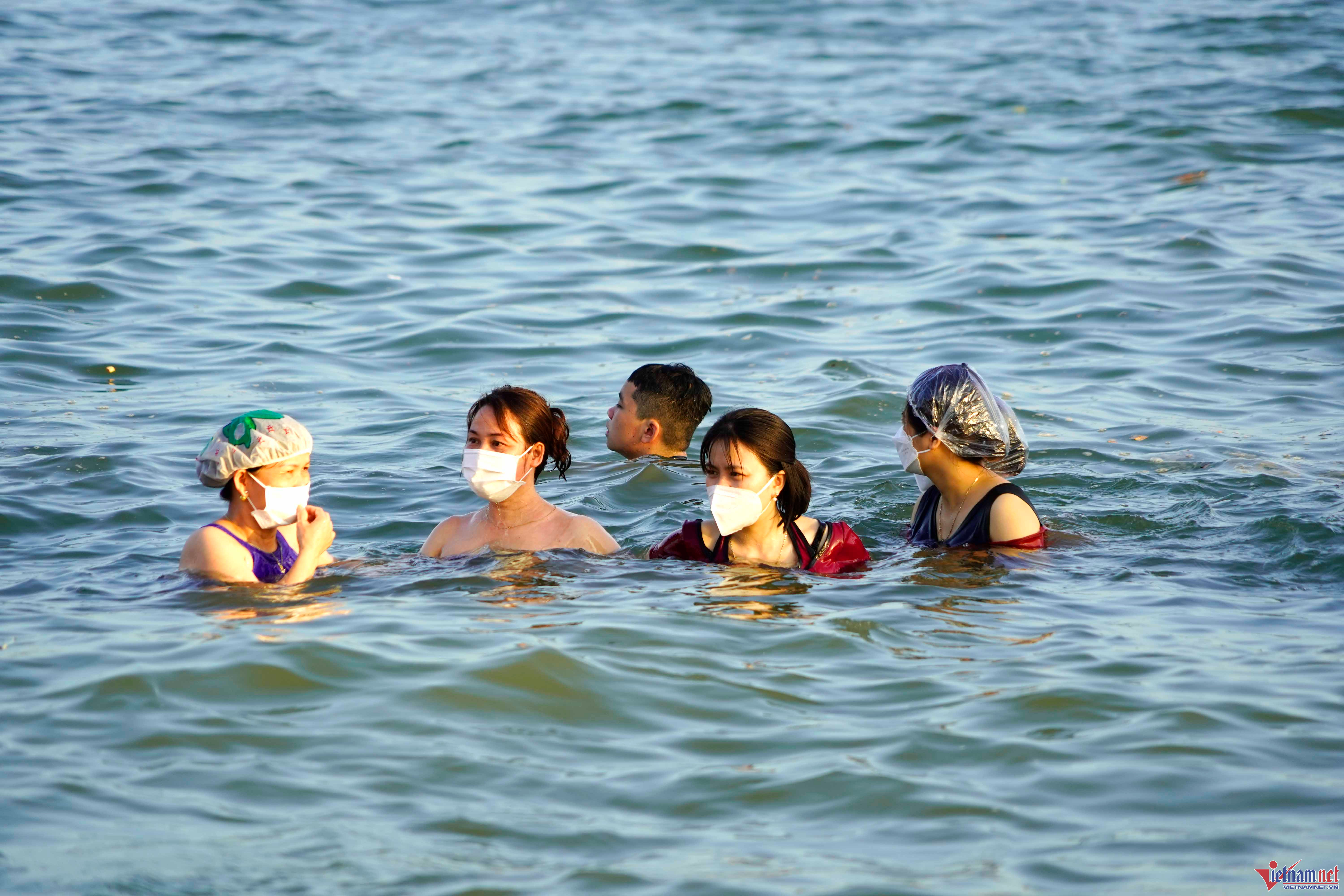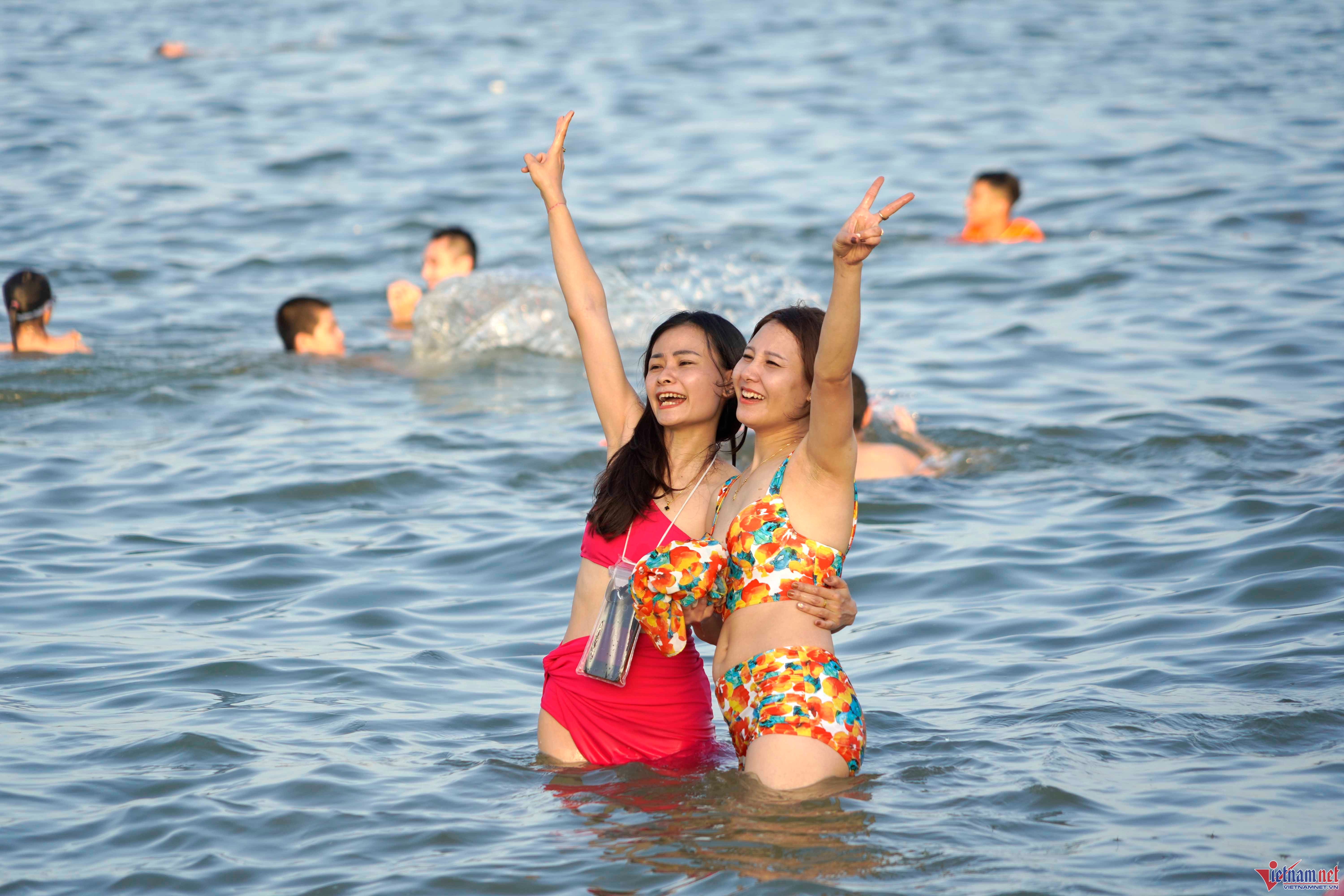 Dọc bãi biển Bãi Cháy là cảnh chen chân, chia nhau từng mét vuông mặt nước để tắm biển.